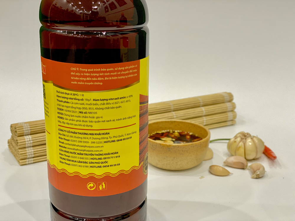 - Tên sản phẩm: Nước mắm truyền thống Khải Hoàn 18 độ đạm