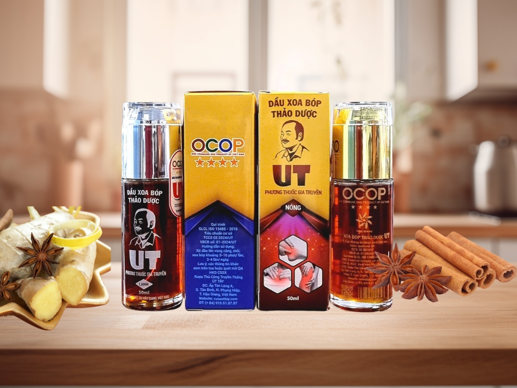 Dầu Xoa Bóp Thảo Dược UT, Loại Nóng – phương thuốc gia truyền kết hợp với việc chiết xuất từ nhiều loại thảo mộc thiên nhiên, sẽ giúp bạn xua tan mệt mỏi, lưu thông khí huyết và làm dịu nhẹ cơn đau tức thì.