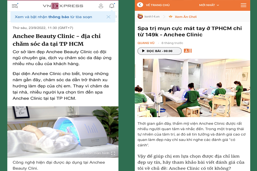 Báo Chí Truyền Thông nói về Viện Thẩm Mỹ Anchee Clinic : Báo Vnexpress , 24h.com.vn , Báo saostar , Báo kenh14.vn …….