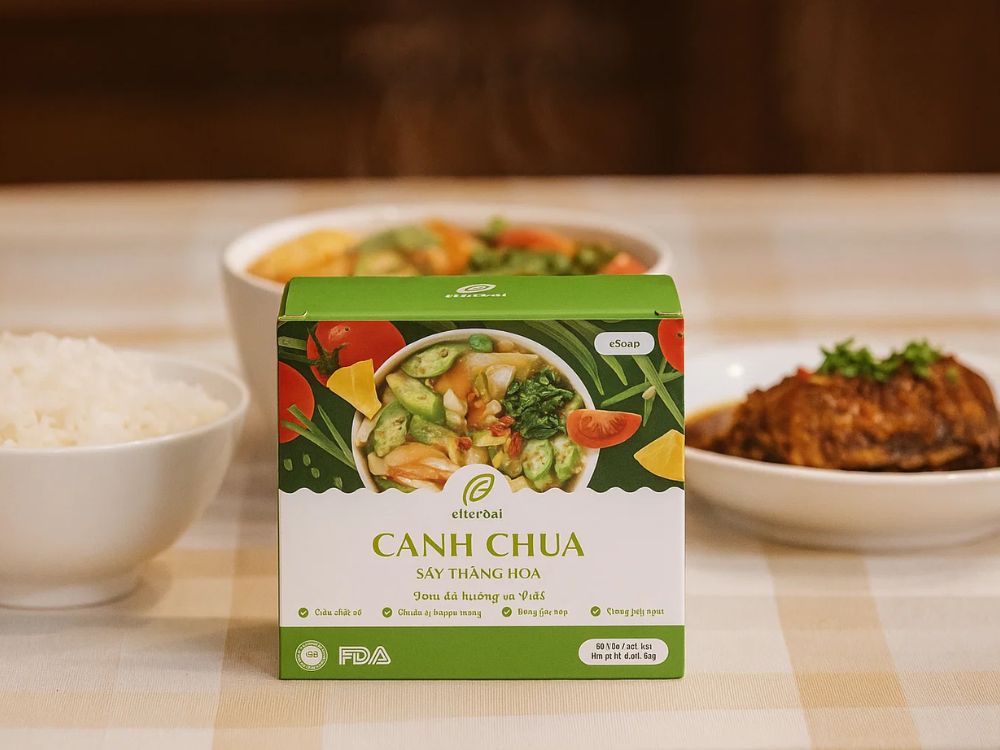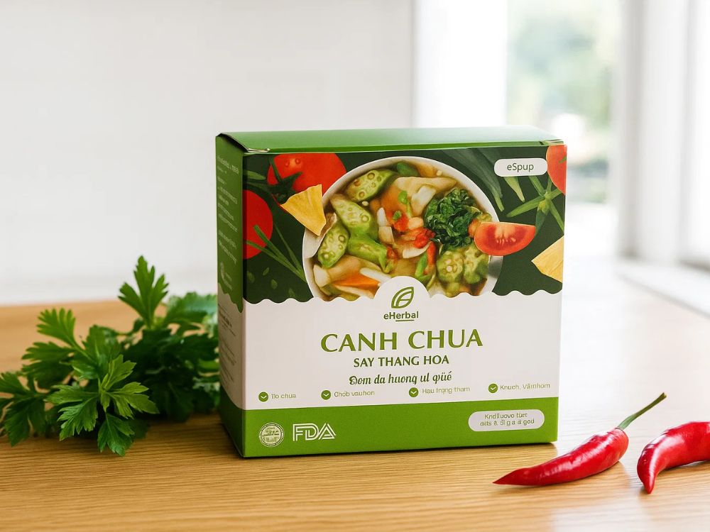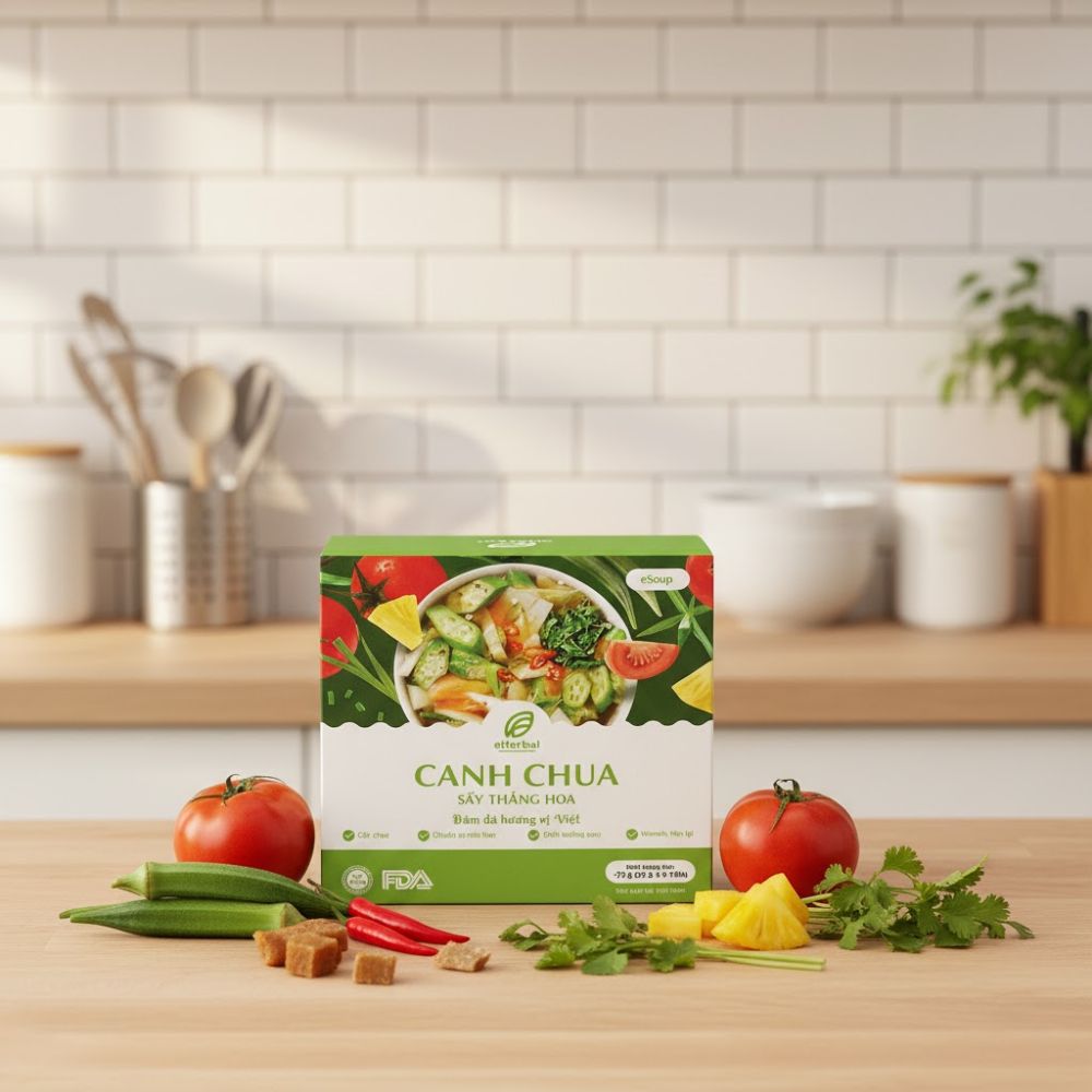 eSoup Canh chua là giải pháp canh ăn liền đột phá sử dụng công nghệ sấy thăng hoa hiện đại để giữ trọn vẹn hương vị chua thanh thanh đạm và dưỡng chất tự nhiên của nguyên liệu tươi