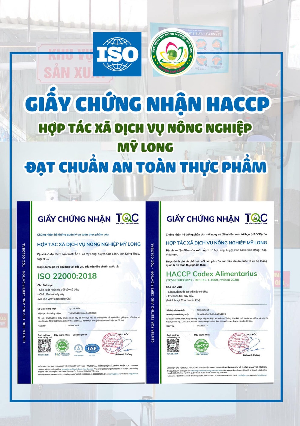 Ngày 11/07/2023, Hợp Tác Xã DVNN Mỹ Long tổ chức lễ ra mắt sản phẩm mới sau 2 năm ấp ủ tâm huyết. Trong buổi lễ, hân hạnh khi có mặt của Liên Minh Hợp Tác Xã Tỉnh Đồng Tháp, Trung Tâm Kiểm Định và Kiểm Nghiệm Đồng Tháp, Sở KH & CN Đồng Tháp, Đài Phát Thanh truyền Hình Đồng Tháp và đại diện các đoàn thể của Huyện, UBND Xã Mỹ Long cùng chứng kiến cho sự kiện này.