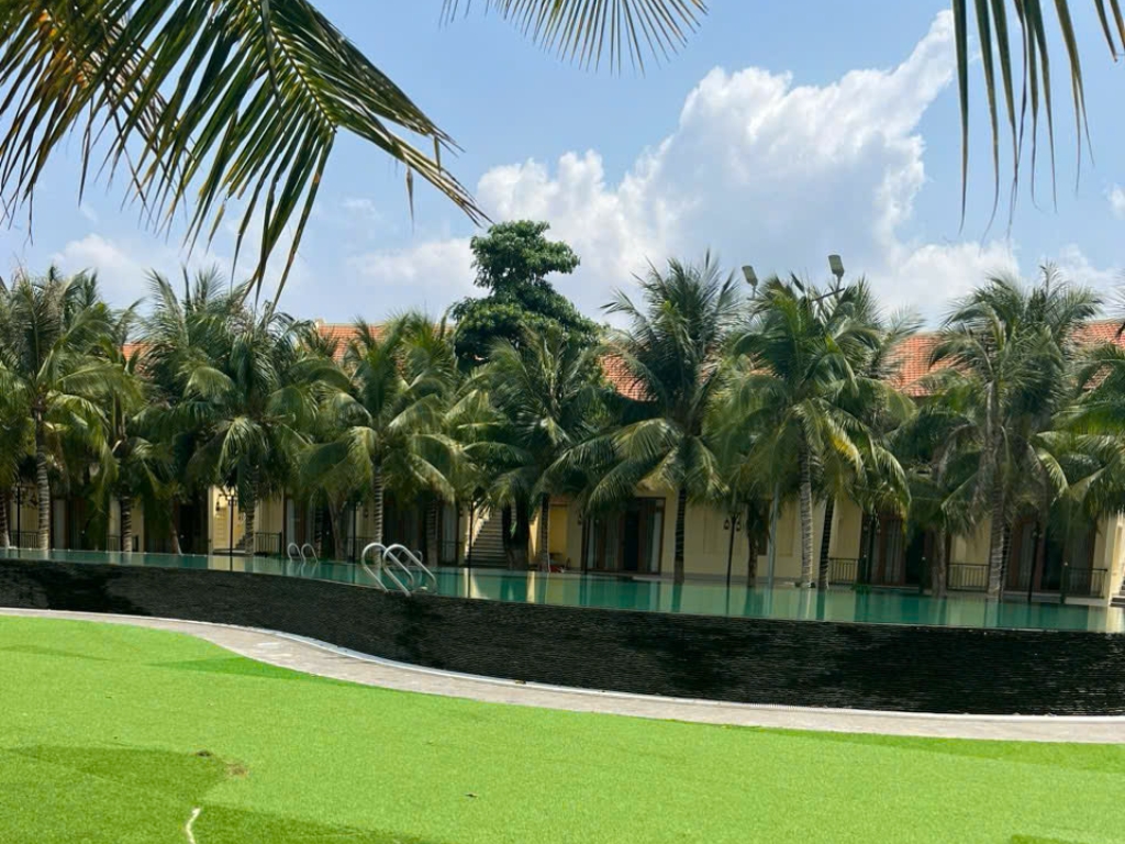 Hồ bơi tuyệt đẹp xung quanh là hàng dừa xanh và các loại cây trái xanh tươi, là nơi lý tưởng giúp Quý khách thư giãn, an yên.