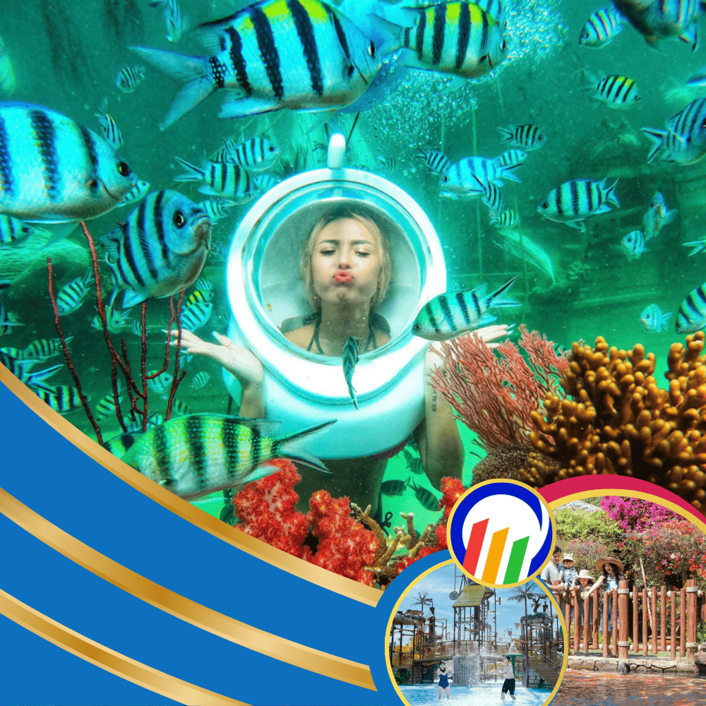 Tour Cáp Treo Hòn Thơm + Đi Bộ Dưới Biển Ngắm San Hô là hành trình khám phá những hòn đảo xinh đẹp nhất Phú Quốc. Du khách sẽ được tận hưởng không gian giải trí sôi động tại Aquatopia Water Park, trải nghiệm đi bộ dưới biển chiêm ngưỡng thế giới san hô rự