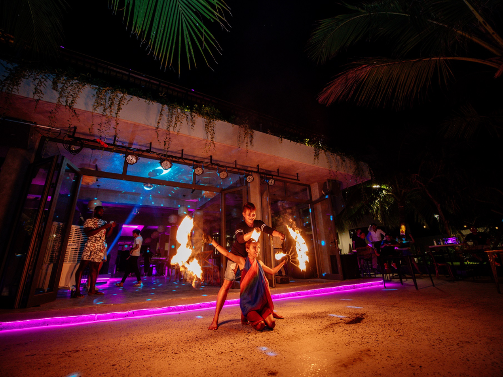 Sunset Beach Bar & Restaurant là quán bar bãi biển toạ lạc ngay trong khuôn viên của khu nghỉ dưỡng. Bao quanh quán là biển trời hùng vĩ, cảnh sắc thơ mộng. Vì vậy, Quý khách sẽ có cơ hội chiêm ngưỡng trọn vẹn vẻ đẹp của thiên nhiên đảo ngọc, đặc biệt là khung cảnh rực rỡ sắc màu mỗi khi hoàng hôn buông xuống ngay tại quán. Không chỉ phục vụ những ly cocktail tuyệt hảo cùng những món ăn đơn giản nhưng ngon miệng, Sunset Beach Bar & Restaurant còn mang đến cho Quý khách một không gian sôi động với các bản nhạc EDM thời thượng được trình diễn bởi dàn DJ hàng đầu tại Phú Quốc. Ngoài ra, Quý khách cũng sẽ được tận hưởng các phần trình diễn múa lửa "nóng bỏng'', đầy hấp dẫn, mê hoặc, hứa hẹn tạo nên những kỉ niệm vô cùng đáng nhớ cho chuyến hành trình ghé thăm đảo ngọc của mỗi du khách.